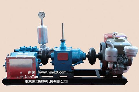 主要特點1.具有可滿足大、小口徑鉆機所需的擋流量,流量調節范圍大,參數選擇合理。可與XY-4巖心鉆機和XY-5型鉆機配套使用。可滿足不同口徑、不同孔深、不同地質巖心鉆探的需要。 2.活塞為碗形加尼龍靠背的自封式S型聚胺脂橡膠活塞,大大提高使用壽命。 3.拉桿上設有五道防塵密封圈,以防止液力端的泥漿帶入動力端和動力端潤滑油濾。經多次生產試驗證明,密封可靠,性能良好。致使齒輪延長使用壽命。 4.進排水閥采用鋼球。并在閥蓋上設有減聲橡膠墊,以減少沖擊噪聲。 5.壓力表采用BY-1型抗震壓力表,壽命長。 6.結構緊湊,造型美觀。 7.可拆性好,便于維修和搬遷。