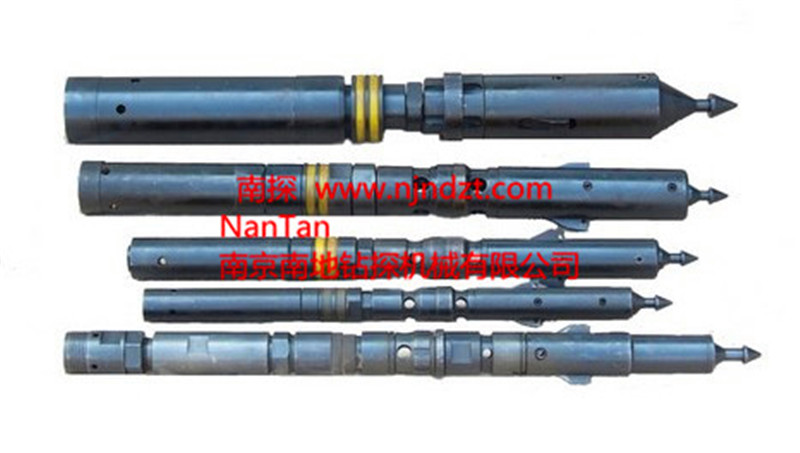 取芯鉆桿鉆具是一種不提鉆而從鉆桿內(nèi)撈取巖芯的鉆井工具。它具有鉆進效率高,巖心采取率高,鉆頭壽命長,勞動強度小等優(yōu)點。隨著鉆孔深度的加深,其優(yōu)勢更為明顯。整套鉆具包括鉆具總成、鉆桿、加厚鉆桿、提引器、打撈器、夾持器、電動或柴油機驅(qū)動繩索絞車和金剛石自由鉗等部件。