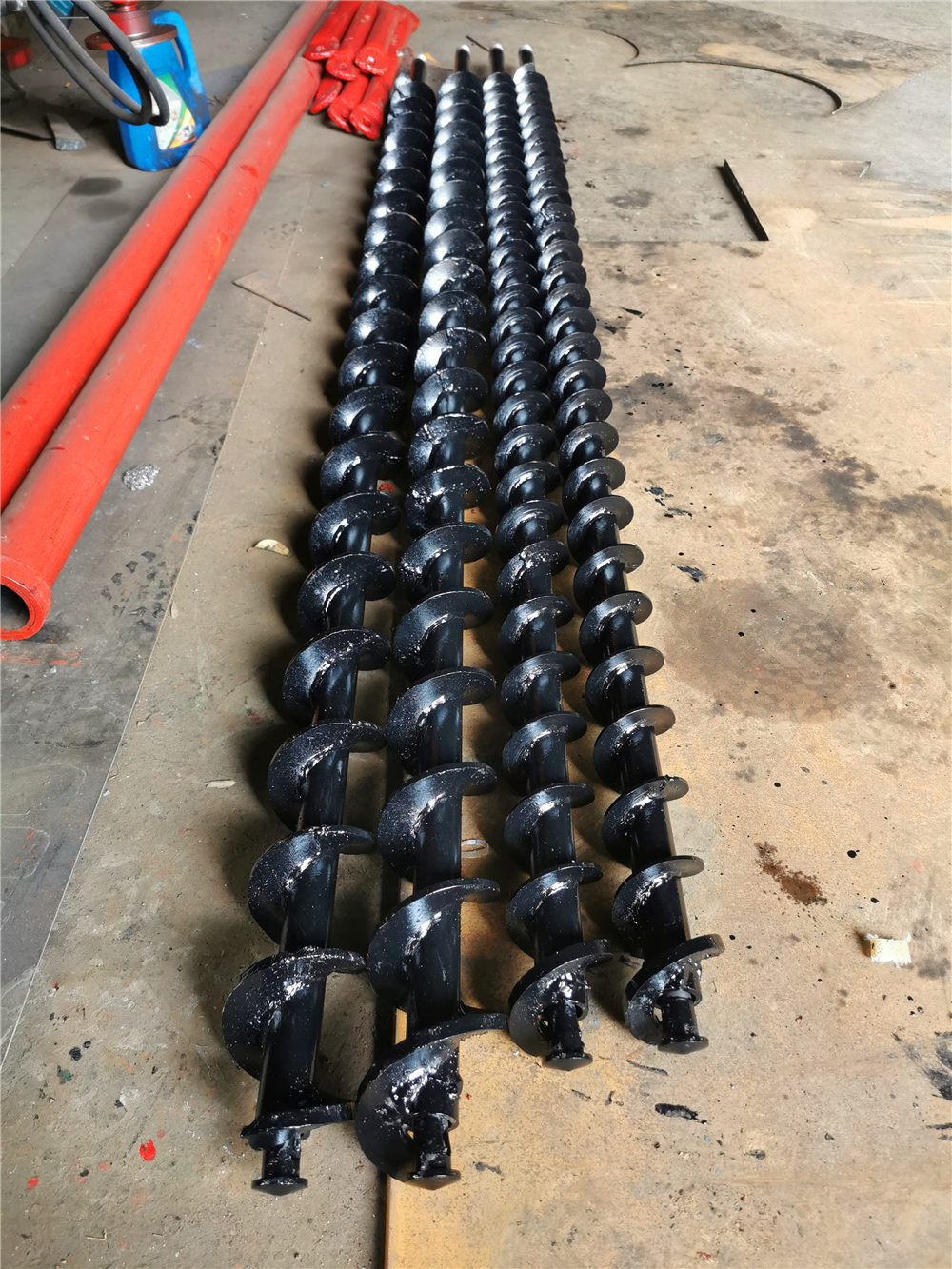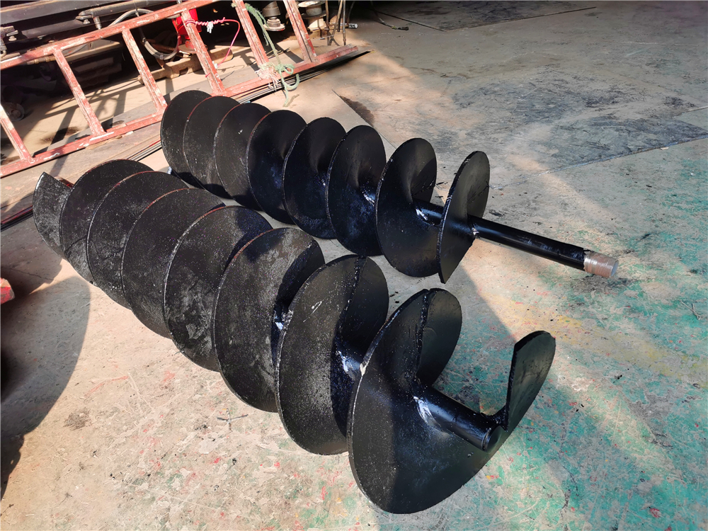常用提土鉆(麻花鉆、螺旋鉆):葉片直徑:Φ75、Φ90、Φ110、Φ130、Φ150,大口徑有Φ180、Φ200、250、300、350、400、450、500...常用長度0.5m、1m、1.5m、2m、3m,葉片分標準和全葉兩種。