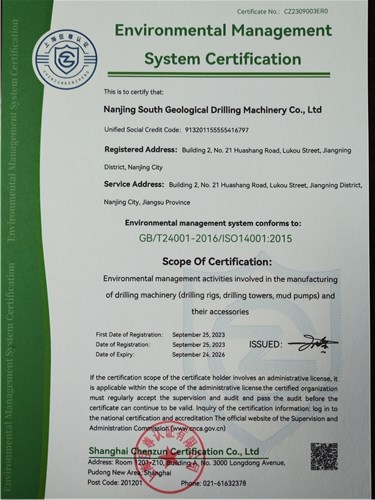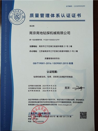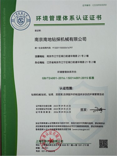 企業通過ISO9001:2015質量管理體系認證、ISO14001:2015環境管理體系認證、ISO45001:2018職業健康安全管理體系認證。
