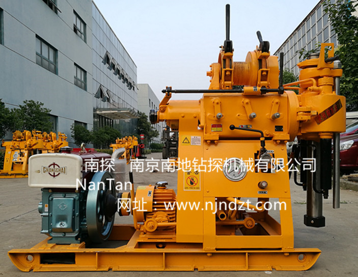 ?為使本機的適用性更廣泛,滿足不同用戶的需求,推出標準型XY-200型鉆機(不帶水泵和移機功能)、移機型XY-200(YJ)型鉆機(帶移機功能)和帶移機帶水泵功能的XY-200-2型鉆機。鉆機、柴油機(或電動機)安裝在同一底座上。鉆進深度可達200米。
